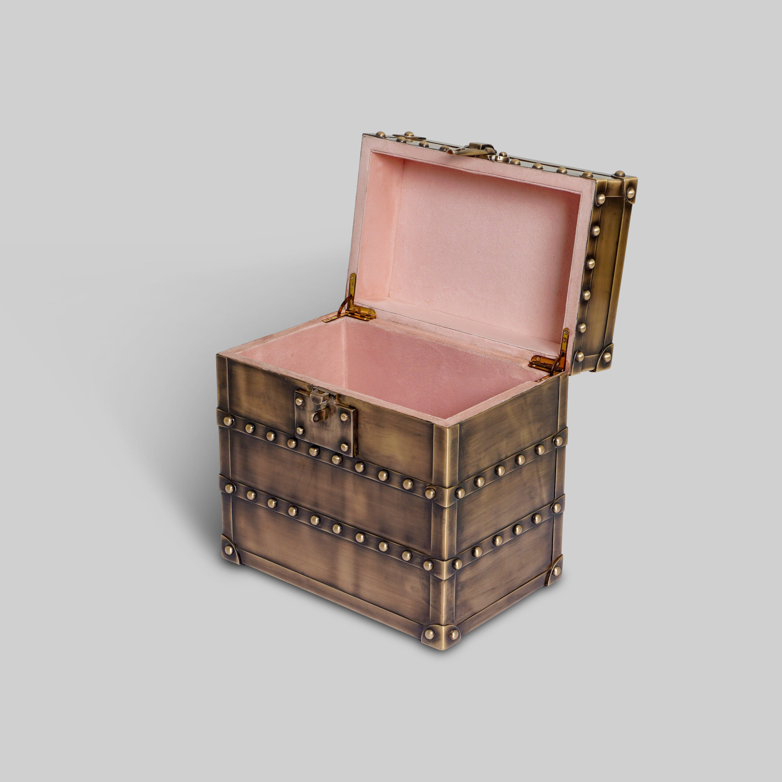 The Golden Trunk Box is all about luxury. Its aesthetic design and antique look offer both functionality and a rich finish. Crafted entirely from brass its antique vibes is appealing as a home decor piece while also keeping your belongings safe and organized. With a similar brass lock for easy opening and safety, it adds a touch of timeless luxury in any space. It’s a piece worth choosing for a never-ending richness in your home.