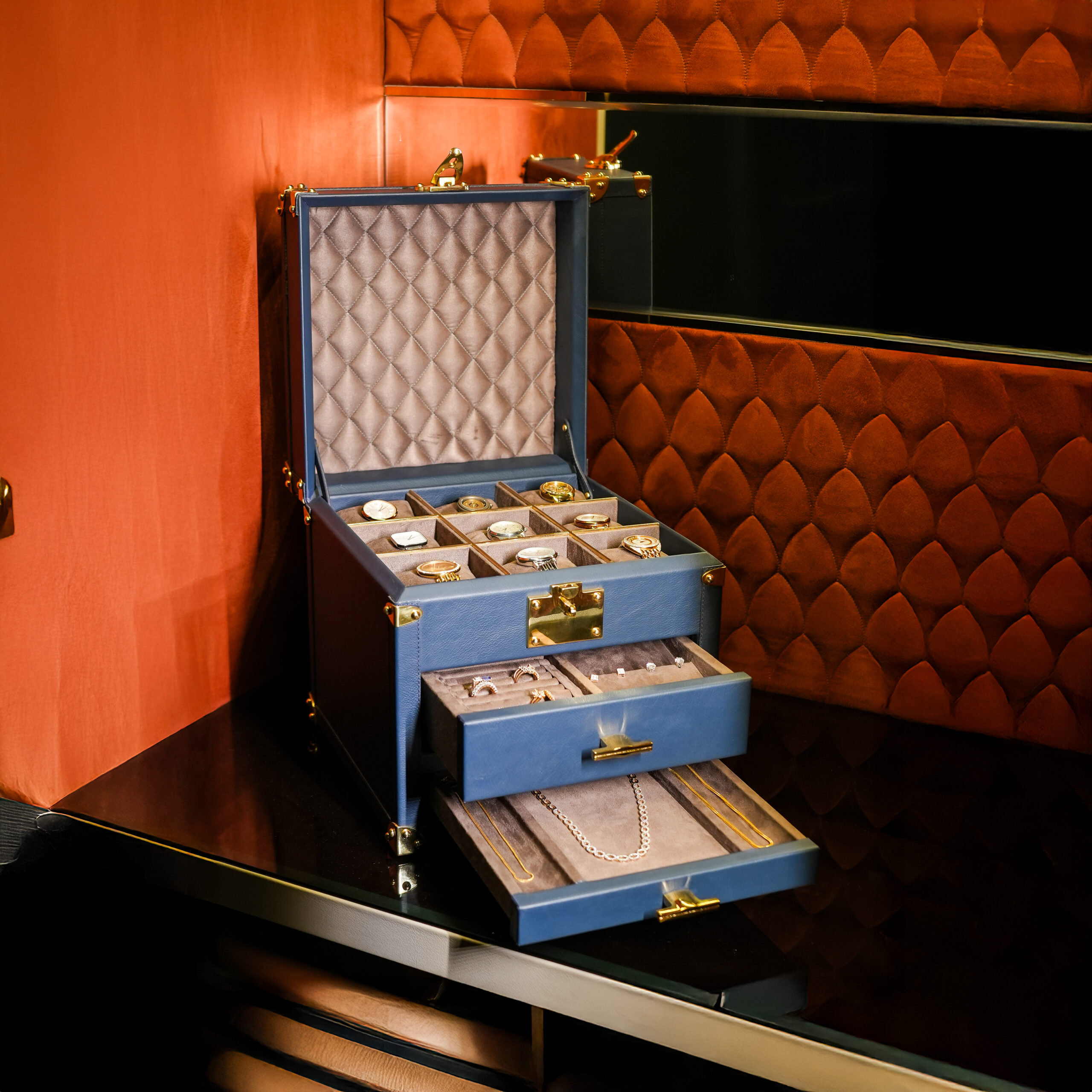 Keep your cherished jewelry organized and protected with our luxurious Leather Jewelry Box. Designed for both style and functionality, this exquisite box is crafted from genuine leather, offering a smooth, sophisticated finish that adds a touch of elegance to your vanity or dresser. Inside, soft suede lining cushions your delicate pieces, preventing scratches and tarnishing. Multiple compartments, ring slots, and a secure closure ensure your accessories stay neatly arranged and easily accessible.