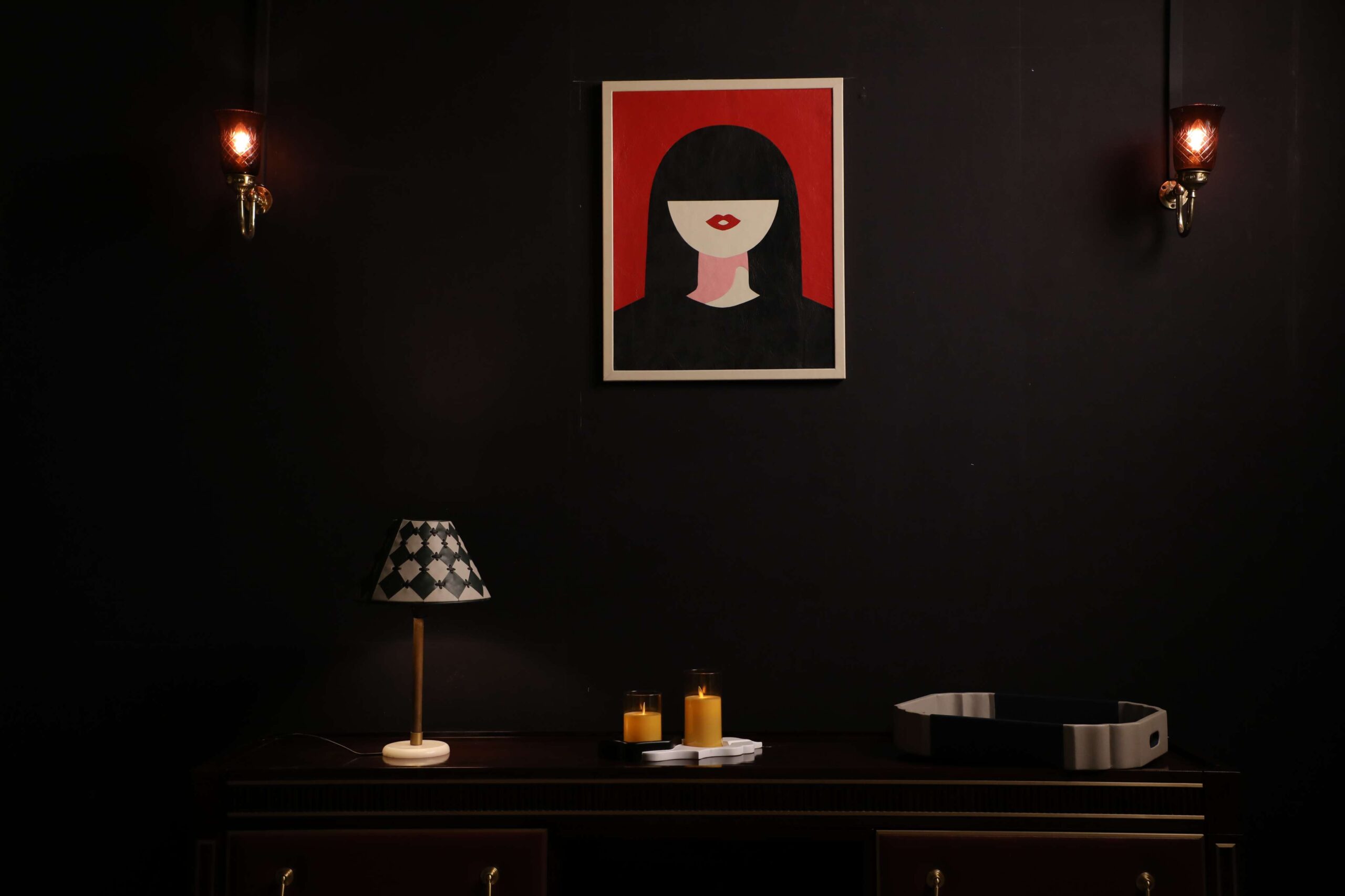 This captivating wall art showcases a minimalist yet striking portrait of a woman with a subtle smile. The bold use of black and red creates a striking contrast, drawing attention to the subject’s expressive features. The artwork exudes a sense of modern elegance and sophistication, making it a perfect choice for those who appreciate contemporary art and home decor with a little touch of modern vibe.