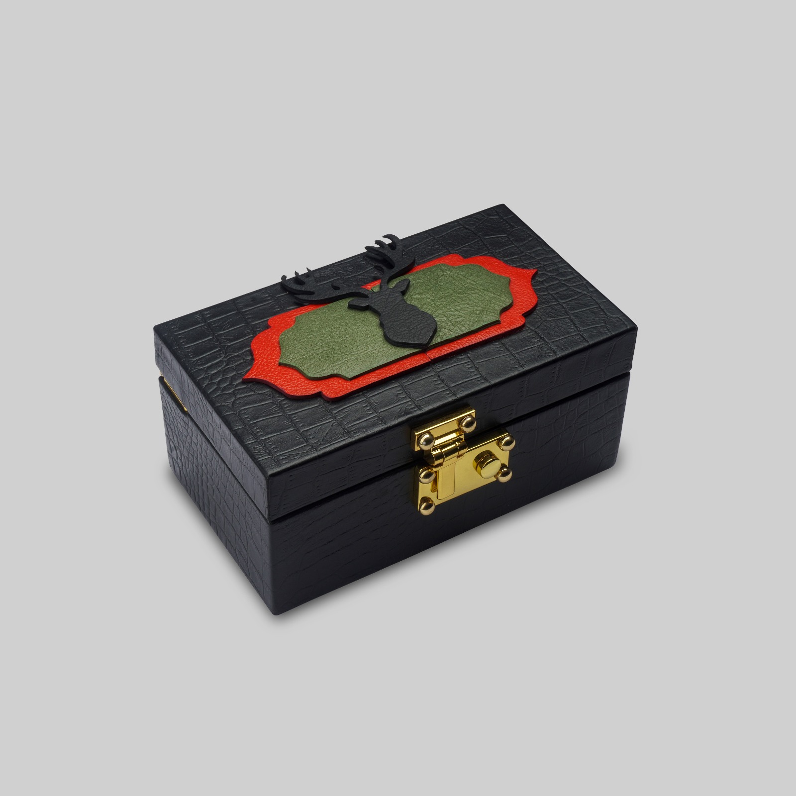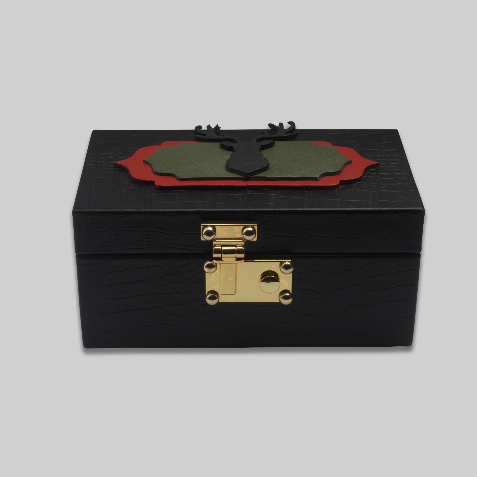 This watch box features a bold look featuring a deer face on its top beautifully blended with traditional Jharokha design. Its clean leather finish with the slight grainy texture, adds up to its luxury appeal. With two sections from the inside, it’s a smart and stylish way to keep your watches safe and timeless forever. Also, its classic finish brings in aesthetic and modern touch in your home decor.