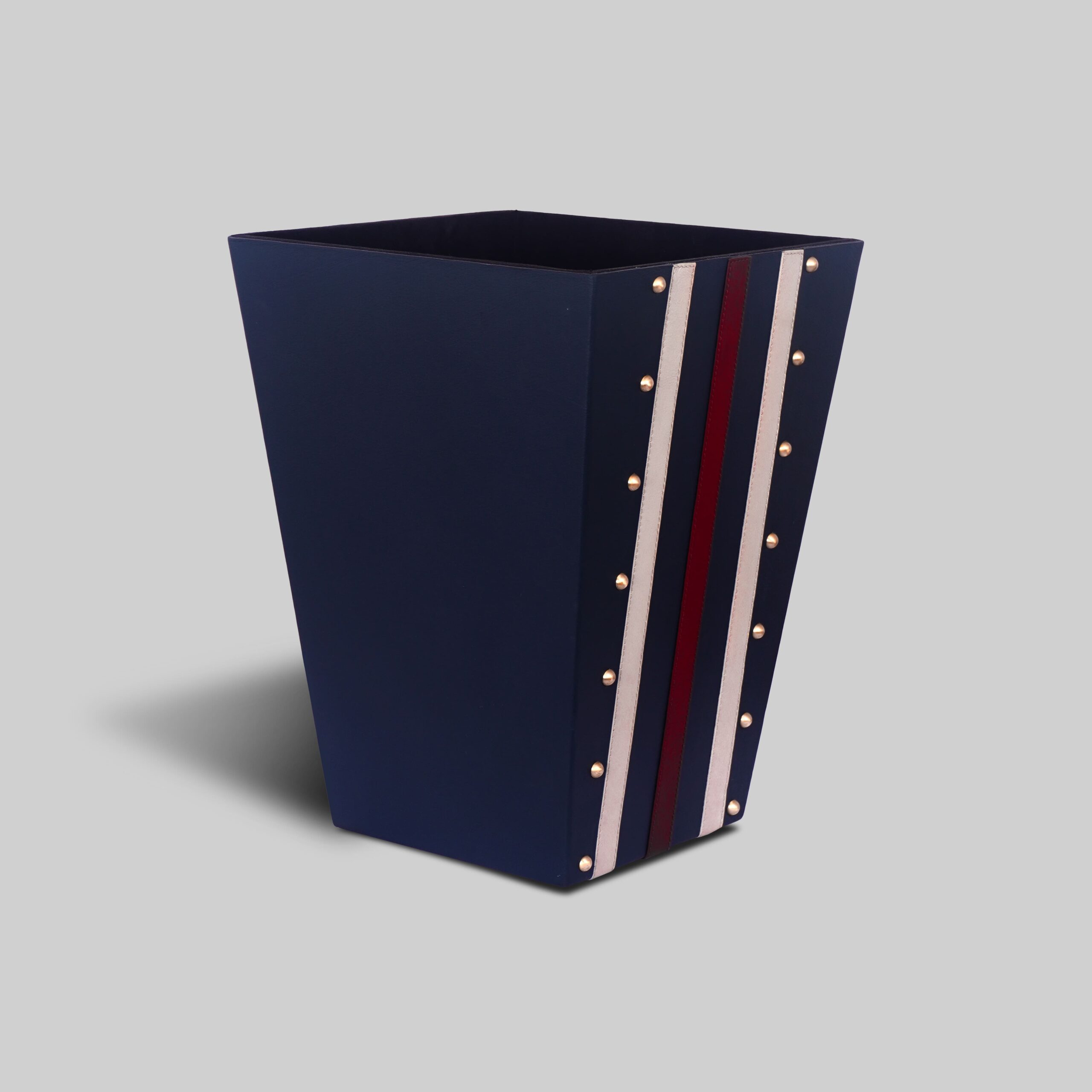 Elevate your waste disposal game with The Blue Bin, a masterpiece of sophistication and functionality. Crafted from genuine leather, this stylish dustbin redefines home or office décor. Its striking blue tone, accented with meticulous detailing, seamlessly combines practicality with luxury.