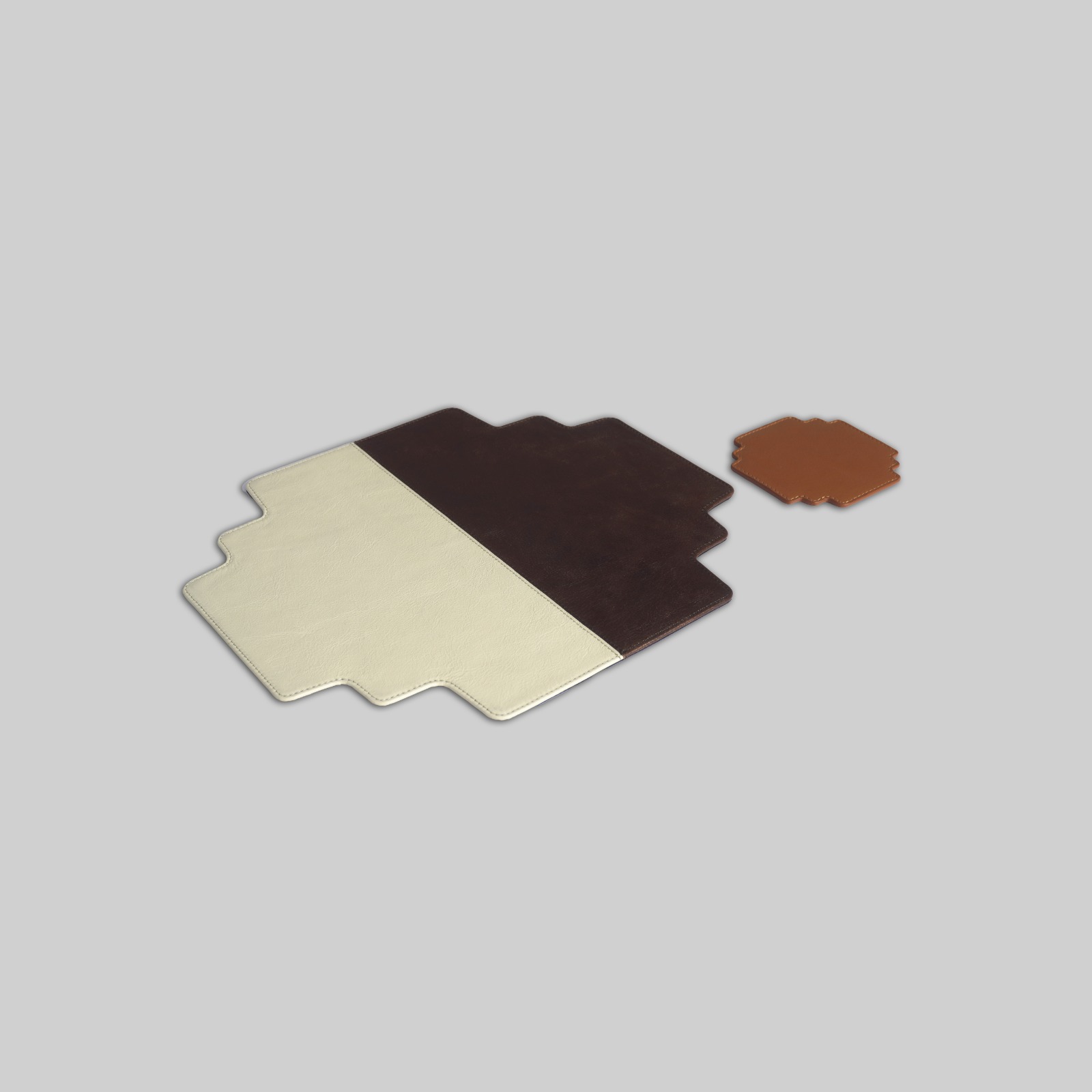This table mat with coasters is a classic addition to your home. Genuinely crafted from leather, these create a visually interesting appeal to your everyday dining. Its edges are thoughtfully designed in levels offering an idea of elevated style. The earthy contrasting tones give a traditional feel to your space as a decor piece. The coaster adds to its overall look making it a perfect choice.