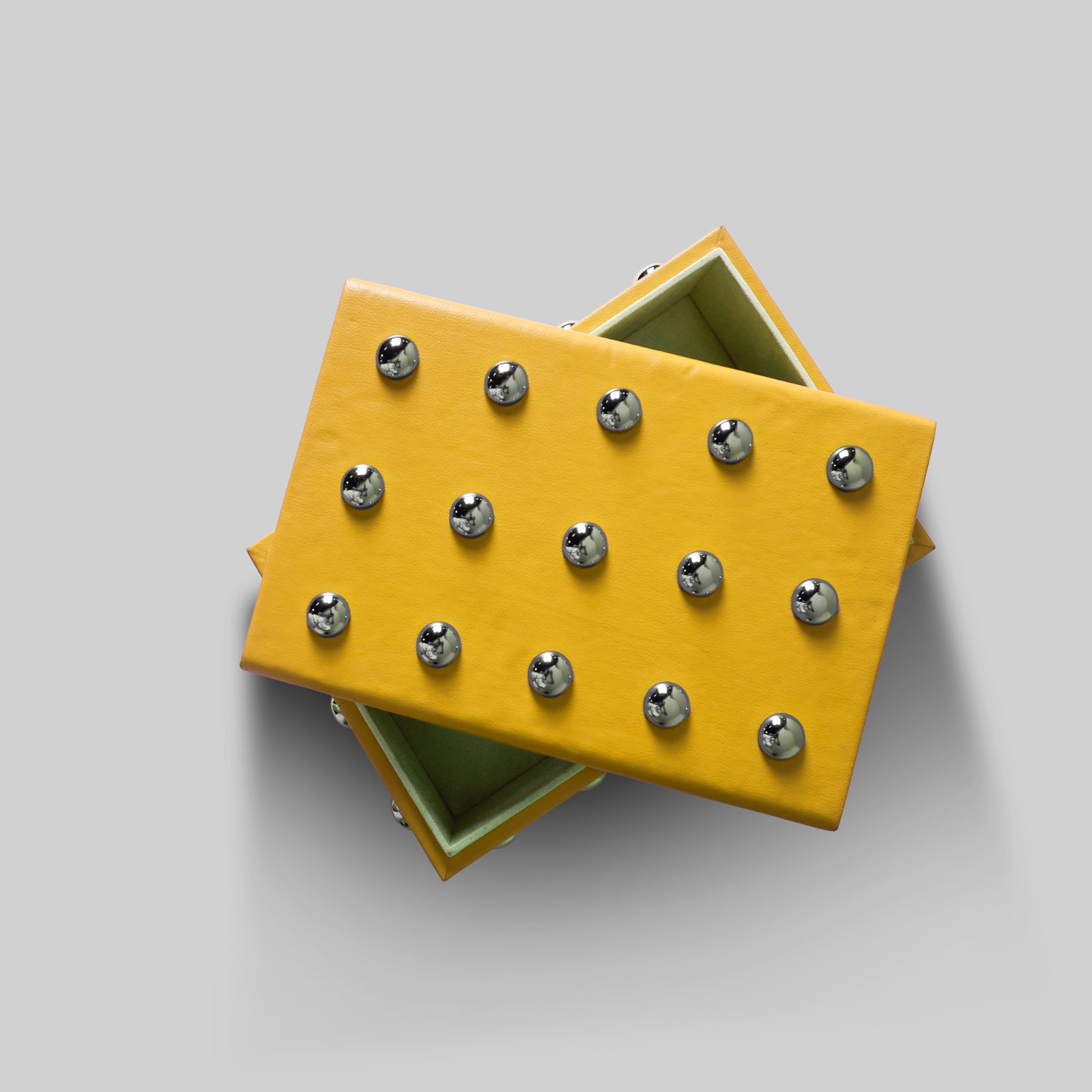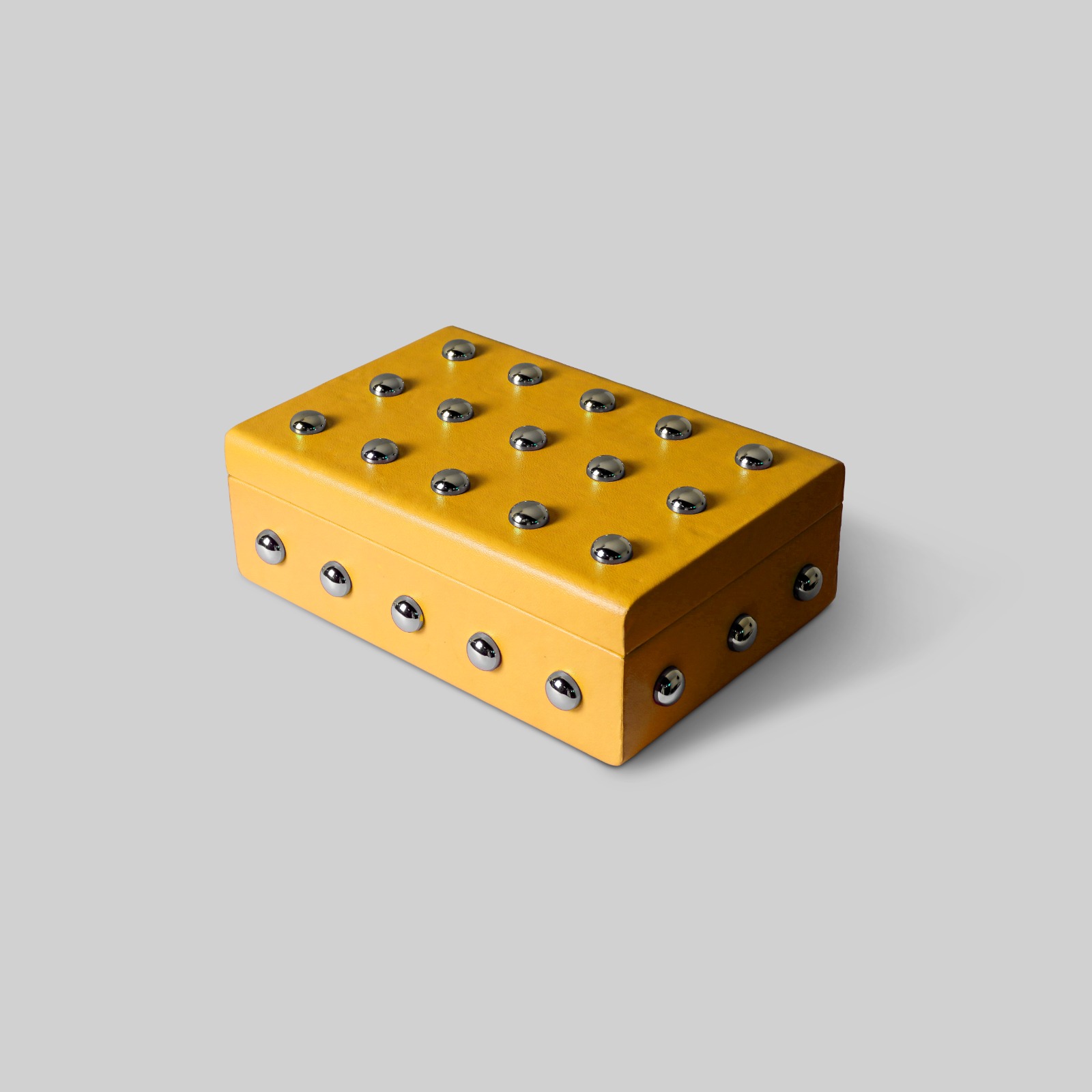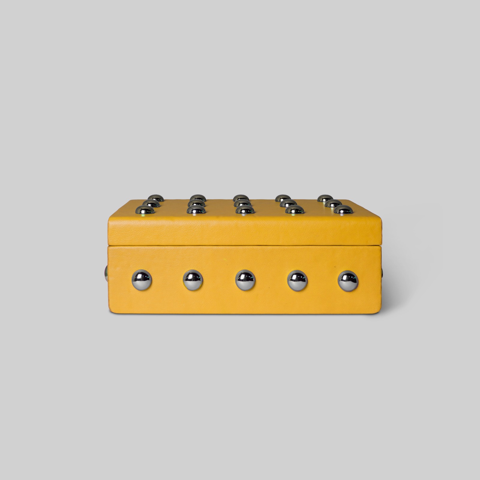 Add a playful and bright hue in your everyday decor with the Zest Box. Its charming look and cool design offer both practicality and luxury. Crafted with premium leather and brass nails detail, it’s a perfect choice to keep your belongings organized with easy accessibility. The box is crafted from high-quality leather and features brass nails details, adding a touch of elegance and classic style. Its vibrant color palette makes it a versatile piece that complements any home decor style.