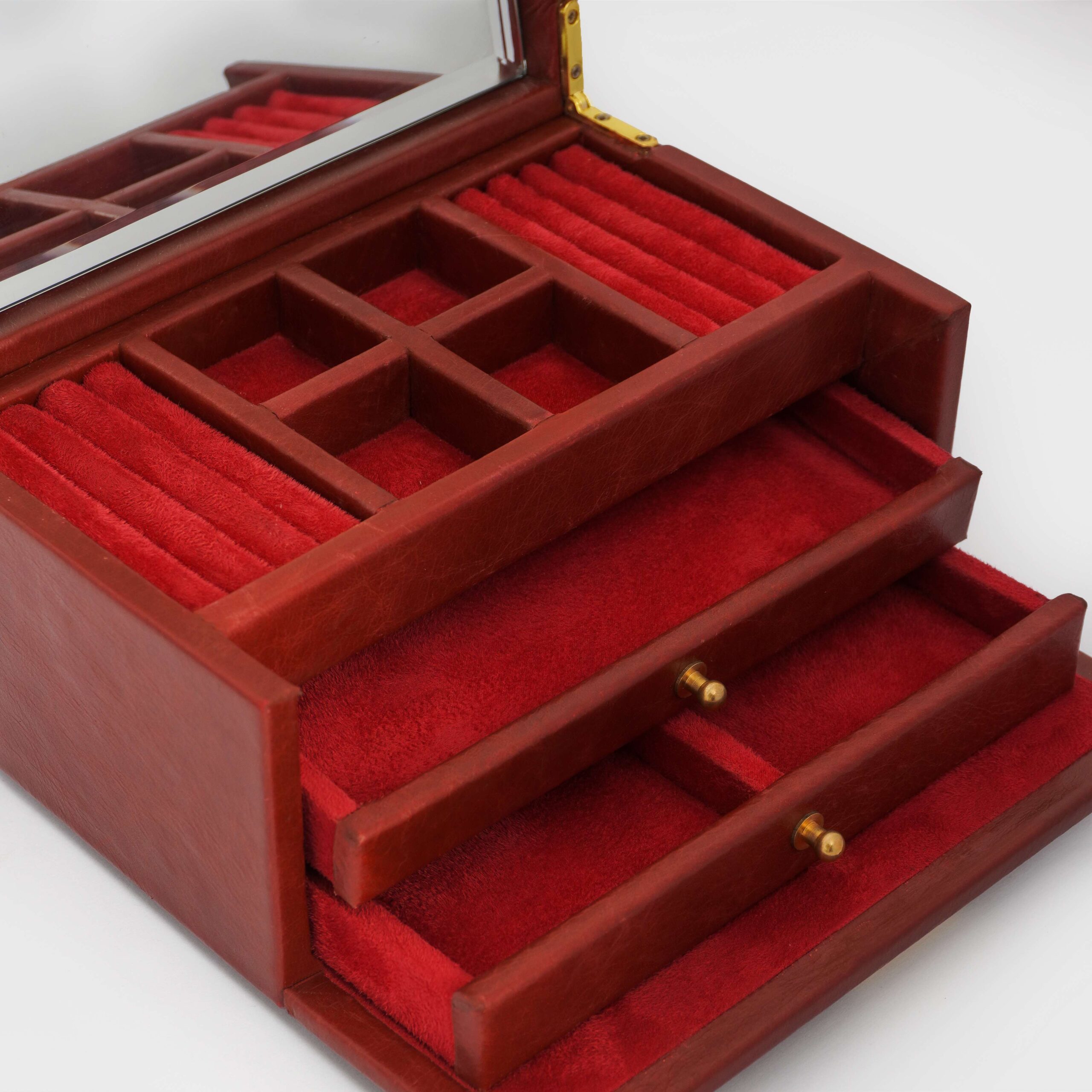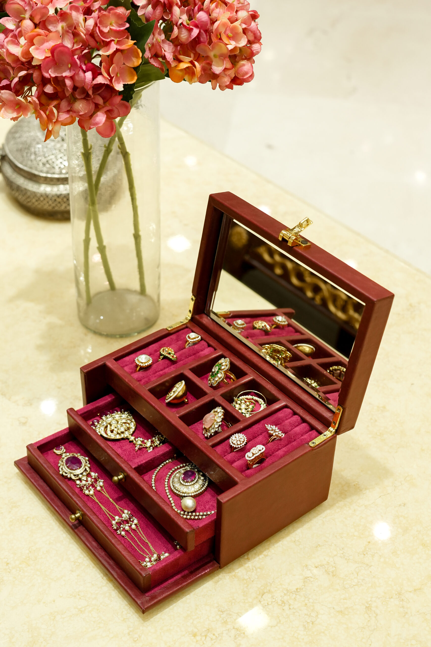 This jewelry box is like a treasure to keep your precious essentials organized and safe. Finished in genuine leather, with a shiny metal handle, it’s easy to carry and keep your accessories organized on the go. From the inside, small sections are made to arrange every piece whether it’s a ring or a neckpiece. Also, with a small mirror, you can adore and check yourself while wearing your jewelry. So, it’s a combination of everything, functional, stylish and accessible as a home decor piece.
