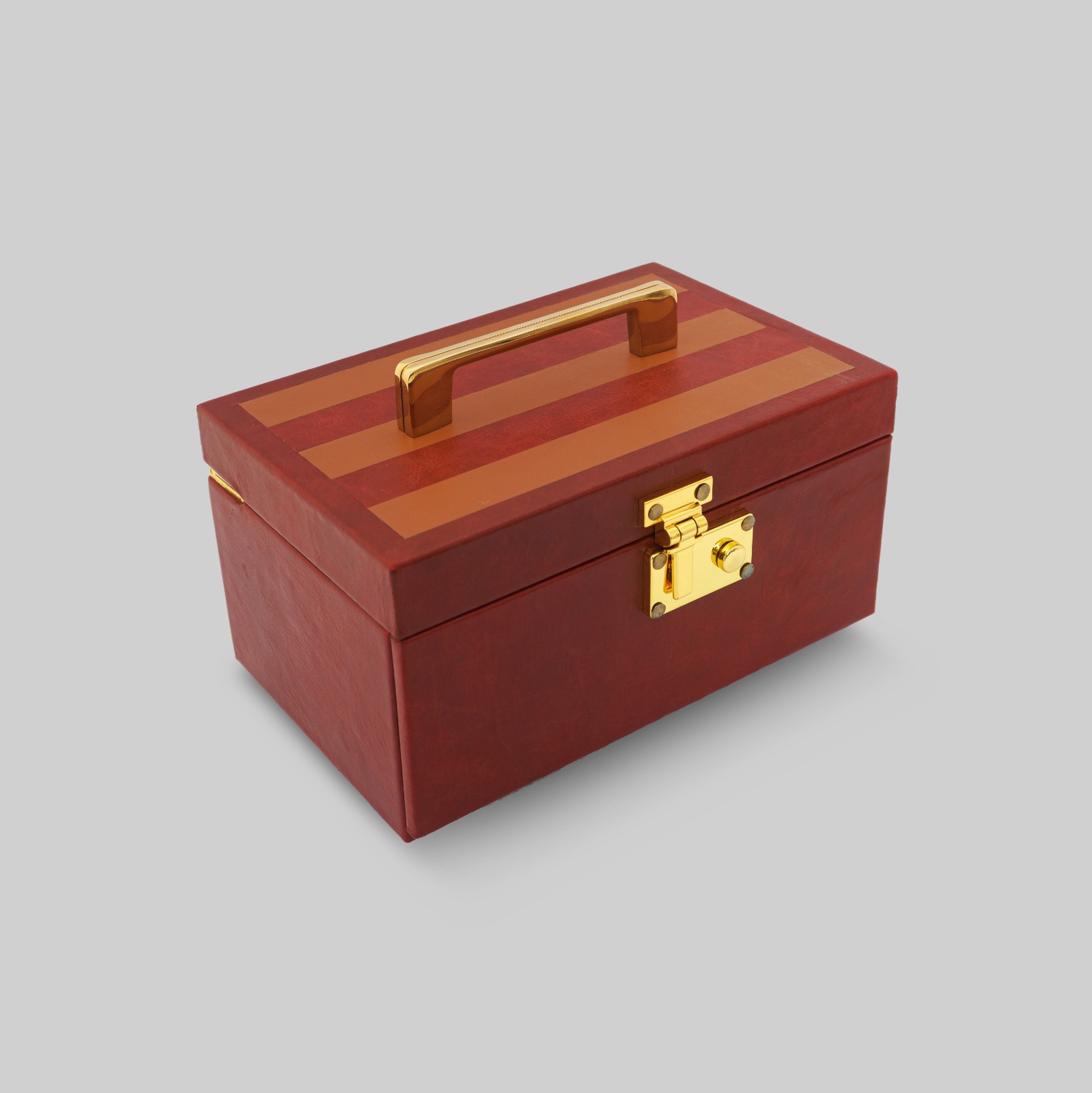 Unleash your inner explorer with this stylish storage solution. Crafted with premium leather and featuring a sleek metal handle, this box is as functional as it is fashionable. Keep your beauty essentials organized in style. A perfect blend of modern aesthetics and practical design.